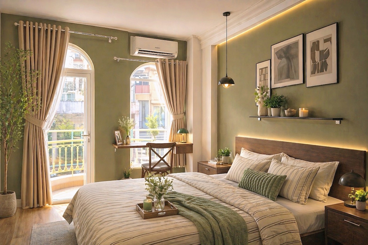 Baru dibina, dilancarkan pada Disember 2023! Terletak di lorong yang tenang di pusat bandar Saigon, apartmen kami yang selesa menggabungkan reka bentuk unik dengan pesona yang aneh. Kemudahan termasuk dapur yang serba lengkap, bilik mandi luas dengan tab mandi & pancuran mandi berasingan, balkoni besar, Netflix & wifi yang menyala. Di tingkat bawah, anda boleh menikmati snek atau kopi di kafe Hai Cai Tay. Kami juga mempunyai mesin basuh/pengering untuk tetamu dalaman kami. Kami berada betul-betul di sebelah Wink Hotel & dalam jarak berjalan kaki ke banyak restoran, kafe dan bar.