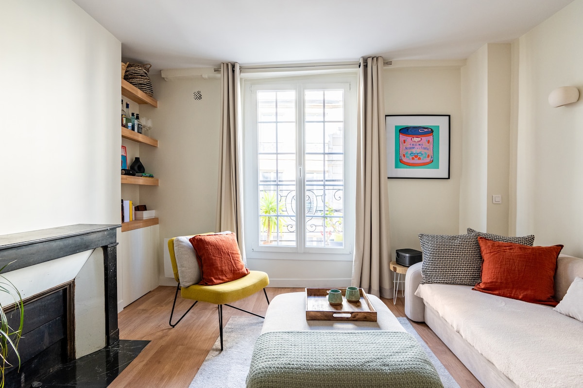 Flat Paris Bergaya dengan Pemandangan Balkoni & Taman