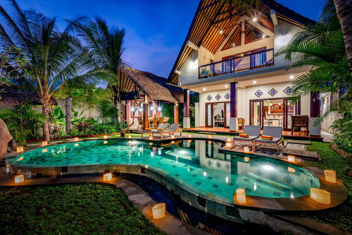 Your very own Beach House with a pool . Perfect for a family vacation, quality time with a group, or a romantic getaway. 3 bedrooms with AirCon, 3 baths. Swim in a 10-meter long pool, jump in the ocean. Some of the best diving & snorkeling on the coast just out the gate. Recline & rejuvenate in a variety of delightful private spaces, the bale with cushions & pergola and pool with sunbeds&hammocks. The owner/chef is renowned for having the Best Balinese food in Bali, served to you by the ocean.