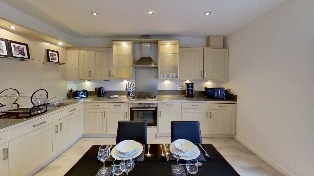 Apartmen dupleks yang terletak di pusat bandar ini mempunyai tiga bilik tidur, siling tinggi, dan dua bilik mandi/pancuran mandi. Nikmati akses mudah kepada kemudahan tempatan yang luar biasa, termasuk pasar raya Sainsbury hanya 30 saat berjalan kaki dari penginapan. Kami menawarkan perkhidmatan pengemasan mingguan untuk penginapan selama 8 malam atau lebih. Tambah sesi bertemu dan berkenalan dengan bantuan daftar masuk dan bagasi, atau pemindahan lapangan terbang, dengan sedikit yuran. Mulakan penginapan anda dengan mudah! Sila ambil perhatian bahawa perkhidmatan ini memerlukan notis minimum 72 jam.