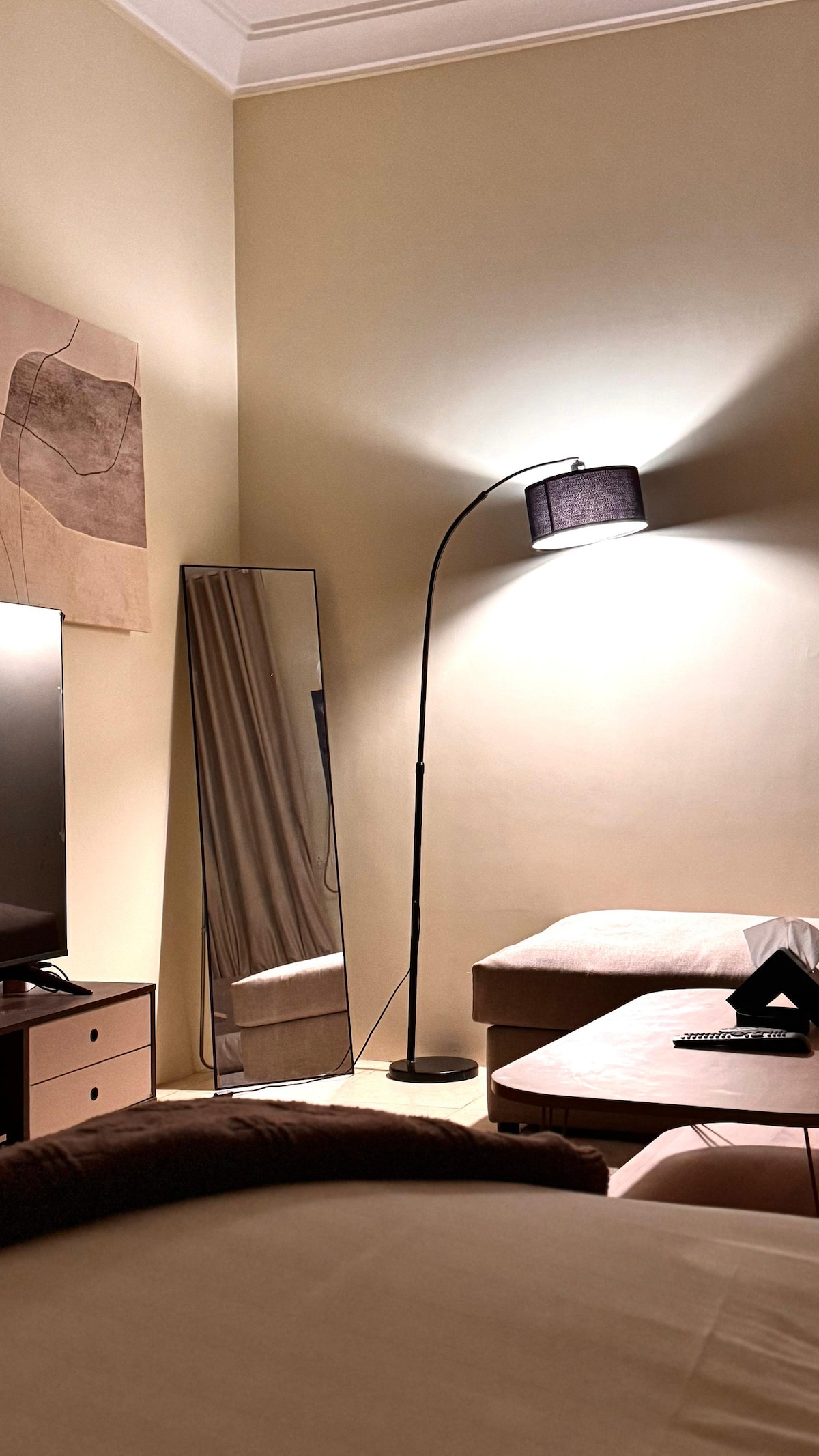 Studio yang direka khas untuk keselesaan anda dengan katil utama, sesi bergaya dan kemasukan sendiri Bilik ini mempunyai sofa yang bertukar menjadi katil apabila diperlukan dan TV. Katil ini mempunyai suasana 20cm untuk pengalaman unik keselesaan dan kelembutan serta rim dan penutup yang dicuci dan ditukar selepas setiap pelanggan. Sudut kopi, peti sejuk dan bilik mandi dengan pancuran hujan dan kerusi gantung. Berhampiran dengan tempat Café Ferro, pasar raya, pelbagai restoran dan taman Terdapat Internet terbuka berkelajuan tinggi. Kami menyediakan akses kad untuk mereka yang menyukainya.