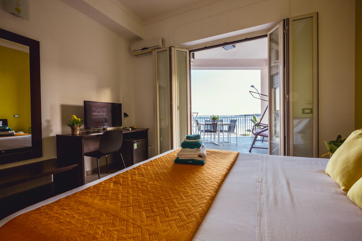 Lo Ionio ialah apartmen mini yang selesa, sesuai untuk 2/3 tetamu. Terletak di tingkat bawah, ia mempunyai dapur kecil, pendingin hawa, bilik mandi dengan pancuran mandi, Wi-Fi, TV dengan penerima, peti besi, dan teres yang indah di mana sarapan dihidangkan dengan pemandangan laut atau makan malam yang menawan pada waktu petang. Gazebo yang boleh ditutup sepenuhnya membolehkan anda menikmati panorama walaupun pada hari yang lebih sejuk. Tempat letak kenderaan B&B percuma. Kereta diperlukan.