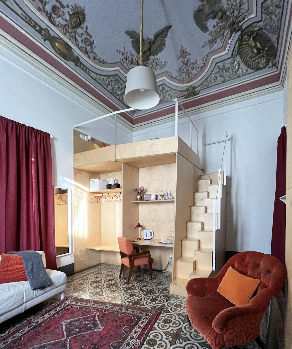 Bilik yang besar dan cantik dengan siling berkubah tinggi, dilengkapi dengan perabot antik dan perabot moden lain. Bilik Lille adalah sebahagian daripada kerja pemulihan dan pengubahsuaian yang teliti yang bertujuan untuk memulihkan struktur asal yang digabungkan dengan perabot dan perkhidmatan moden. Bilik ini dicirikan oleh lantai zaman yang indah dan katil empat tiang moden yang direka ad hoc. Ia diakses dari koridor persendirian dan dilengkapi dengan bilik mandi selesa dengan pancuran mandian. Sekiranya vol.