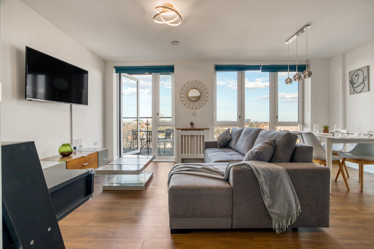 Selamat datang ke flat 2 bilik tidur, 2 bilik mandi kami yang menakjubkan di tingkat 6, menawarkan pemandangan latar langit London yang menakjubkan. Pembangunan yang selamat, dengan dapur pelan terbuka dan ruang tamu, sesuai untuk berehat sambil menikmati pemandangan panorama London Bangun pagi untuk menikmati matahari terbit yang luar biasa dan berehat dengan matahari terbenam yang menakjubkan dari keselesaan rumah anda. Ia menyediakan percutian yang tenang sambil memastikan anda berada dalam jarak berjalan kaki singkat ke perhentian bas dan bawah tanah, dengan Westfield hanya 5 minit menaiki bas.