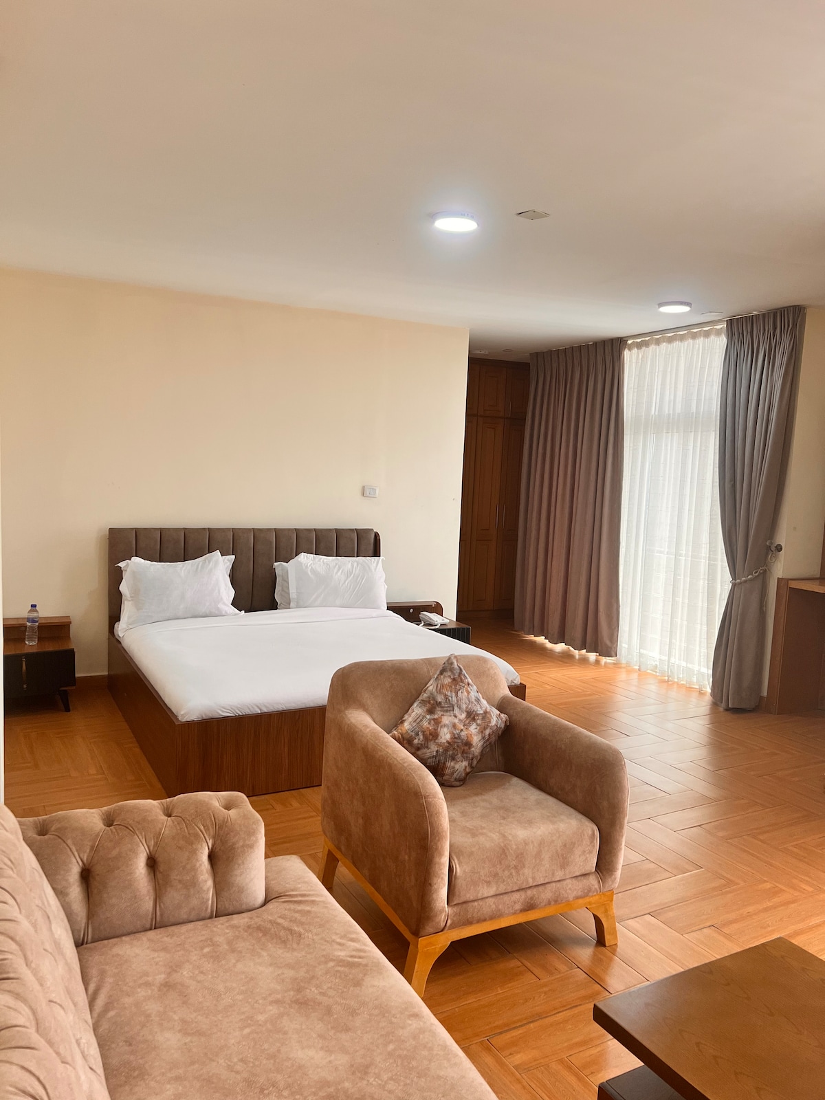 Directly opposite the African Union HQ! Designed for diplomats and professionals, this 3rd-floor suite offers ultimate convenience in a secure district. It features a unique "flex room" that we can set up as a private, quiet office for your meetings or as an extra bedroom. Prime Location: Steps from the AU main gate. Work-Ready: High-speed Wi-Fi and desk. Secure: 24/7 gate security and a peaceful atmosphere. Modern, flexible, and perfectly located.