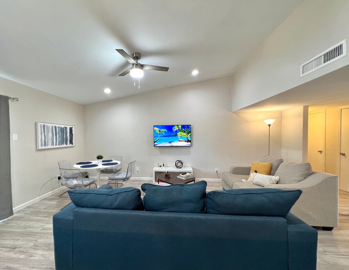Selamat datang ke The Suite Spot – percutian mewah 2BR/2BA anda di Vitruvian West terkemuka Addison! Ceria, moden, dan direka untuk keselesaan, apartmen mewah ini menampilkan Wi-Fi pantas, TV pintar, dobi dalam unit, dan kemudahan gaya resort dengan 1 ruang letak kereta berbayar percuma. Sama ada anda berada di sini untuk perniagaan atau percutian hujung minggu, anda akan berada beberapa langkah dari taman, tempat makan berpenarafan tinggi, dan hanya beberapa minit dari tempat popular Dallas.