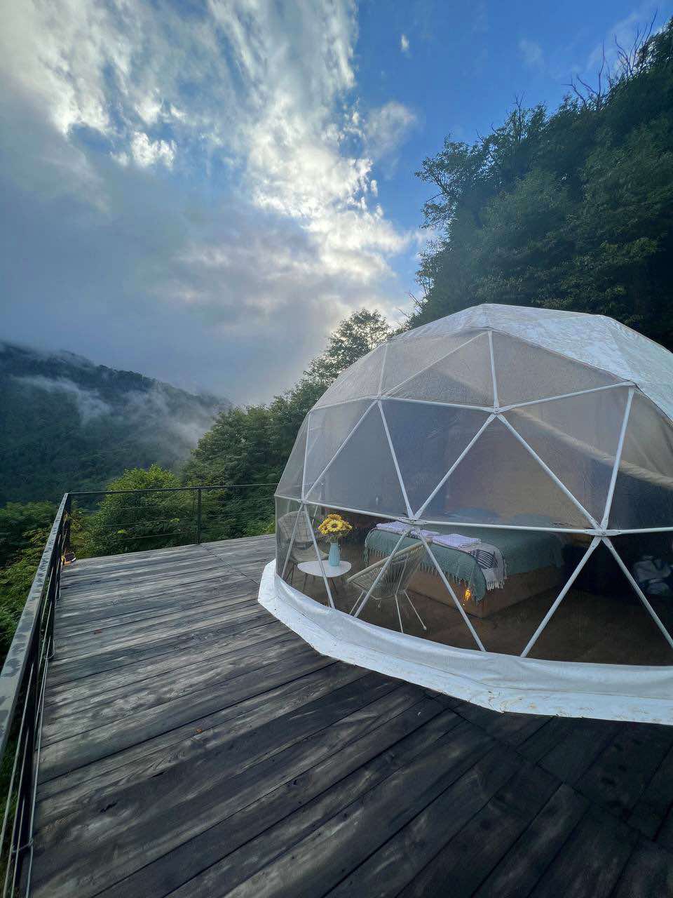 Ajara Glamping's two domes are located in a perfect place, mixing wide beautiful landscape and close dense forest. It offers much more then the price could indicate. All the necessary ammenities and availability of hiking trails, historycal and natural sightsing on a short distance can make your stay memorable. Perfect view, comfortable tent, peace, amazing nature and opportunity to get undesrtand Ajara are key words.