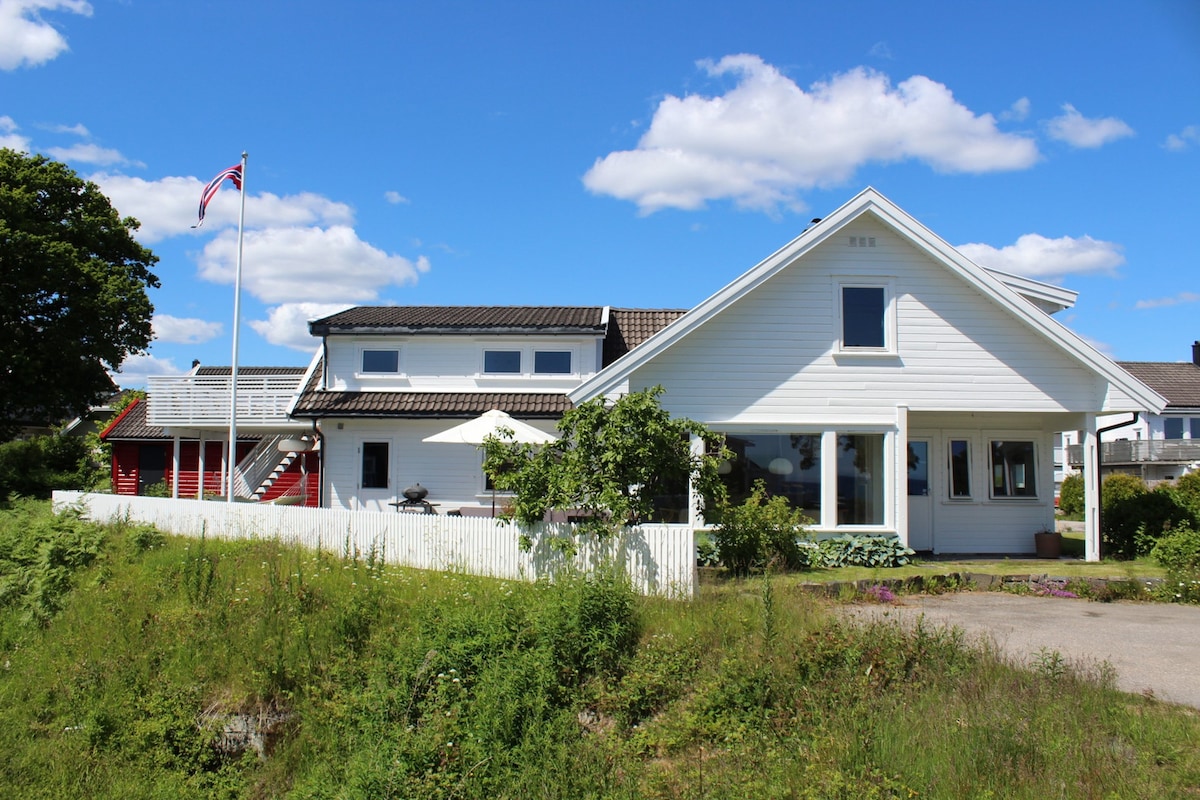 Rumah keluarga tunggal di penghujung jalan buntu, pemandangan fjord bandar. Kawasan luaran: Kawasan luar tertutup yang sangat mesra dan mesra kanak-kanak tanpa pemandangan dari jiran, dengan pemandangan laut. Ruang tamu luar dengan pendiang api, jakuzi 8 tempat duduk, meja makan besar untuk 12 orang. Beberapa kawasan tempat duduk di sekitar penginapan. Rumah: 4 bilik tidur; 3 bilik dengan katil double, 1 bilik katil double + single. Kira-kira 6 minit berjalan kaki ke tempat mandi air dengan pantai berpasir untuk yang paling kecil, batu, gunung menyelam dan rakit berenang. Taman permainan, tong bola dan padang bola sepak. Medan mendaki yang hebat dengan banyak air