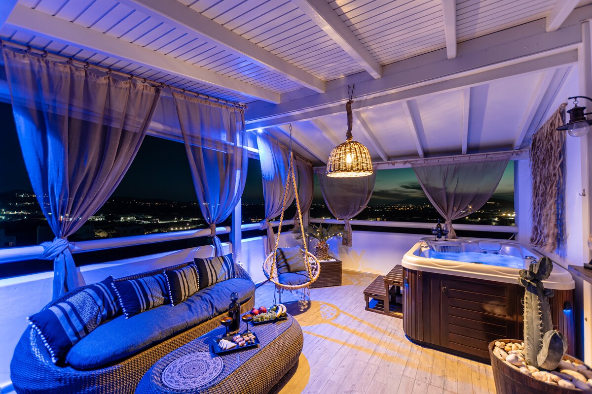 Suite Mewah Pemandangan Naxian dengan Jakuzi Luar terletak di Agios Polikarpos, Naxos, dengan pemandangan panorama Laut Aegean yang luar biasa dan kuil Apollo. Di tempat kami anda akan berehat di jakuzi luar, atau di beranda peribadi anda, menikmati minuman anda. Kami terletak 1,5km dari bandar lama (kira-kira 20 minit berjalan kaki), 1,8km dari pelabuhan (kira-kira 25 minit berjalan kaki) dan 5 minit dari bandar Naxos dengan kereta.