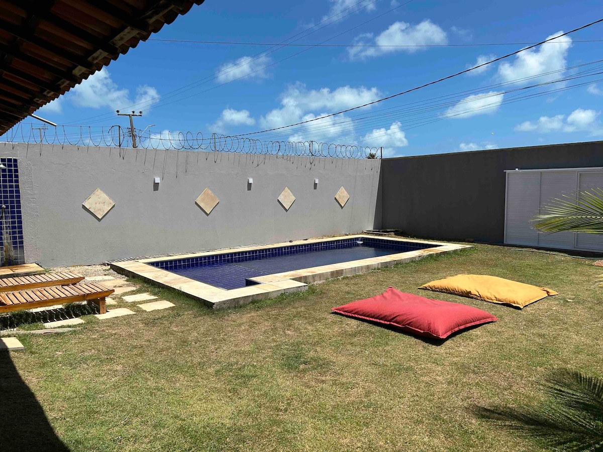 Tempat yang hebat untuk berehat dan berehat Rumah selesa, dupleks, dengan keluasan seluas 200m², 900 meter daripada jumlah kawasan, ruang luar yang luas, kolam renang, dek dengan barbeku, taman, halaman dan balkoni. Ia kurang daripada satu blok dari pantai, lokasi pusat, berhampiran dengan Donana Hotels, Jangadeiro, Pousada do Sol dan pasar "Mangue Seco". Mempunyai 4 bilik tidur dan 3 suite. Perhatian: ia mempunyai Wifi! *Ia berjarak 50 minit dari lapangan terbang Pinto Martins dan 60 minit ke Aldeota.