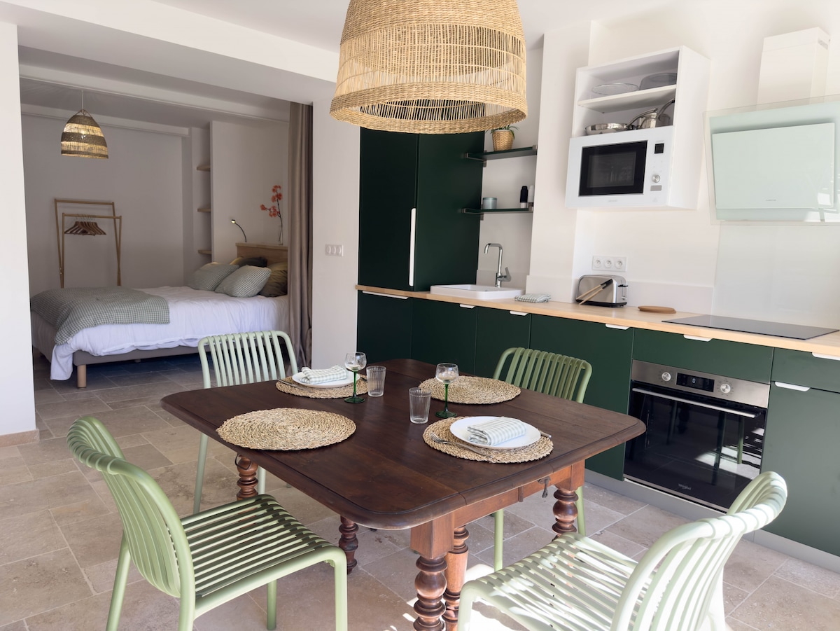 Rumah kami terletak di cul-de-sac yang tenang, 1km dari tanjakan Aigues Mortes dan 100m dari laluan Camargue. Rumah seluas 40m2 ini terdiri daripada ruang tamu dengan dapur dan ruang tempat duduk yang lengkap, dan bilik tidur untuk 2 orang (katil kelamin) dan bilik mandi ensuite, serta teres 6 m2. Tilam udara double disediakan. - tempat letak kereta persendirian percuma di hadapan pintu masuk - cadar/tuala dan pembersihan TIDAK TERMASUK Tanpa pilihan, pembersihan perlu dilakukan sendiri