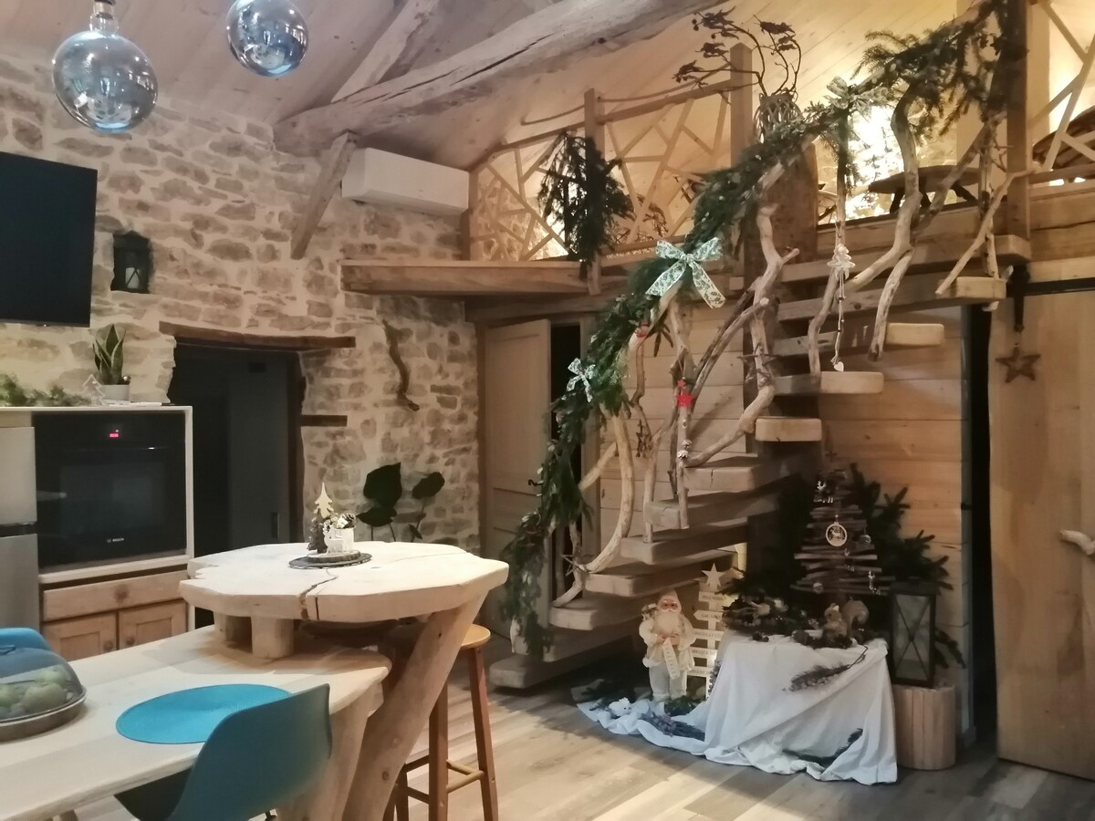 Apartmen yang diubahsuai di bekas bangunan Bauges, diperbuat daripada batu, di antara tasik dan gunung. Anda akan masuk melalui pintu masuk bebas dan dapat meletakkan kenderaan anda di tempat perlindungan. Terdiri daripada bilik tidur dengan katil kelamin dan katil bujang, bilik mandi yang lengkap dengan pancuran mandi Itali 120x80, dapur yang lengkap dengan semua yang anda perlukan dan ruang tamu yang selesa. Cadar disediakan tetapi kami tidak menyediakan tuala mandi, jangan lupa untuk mengambil tuala anda sendiri.
