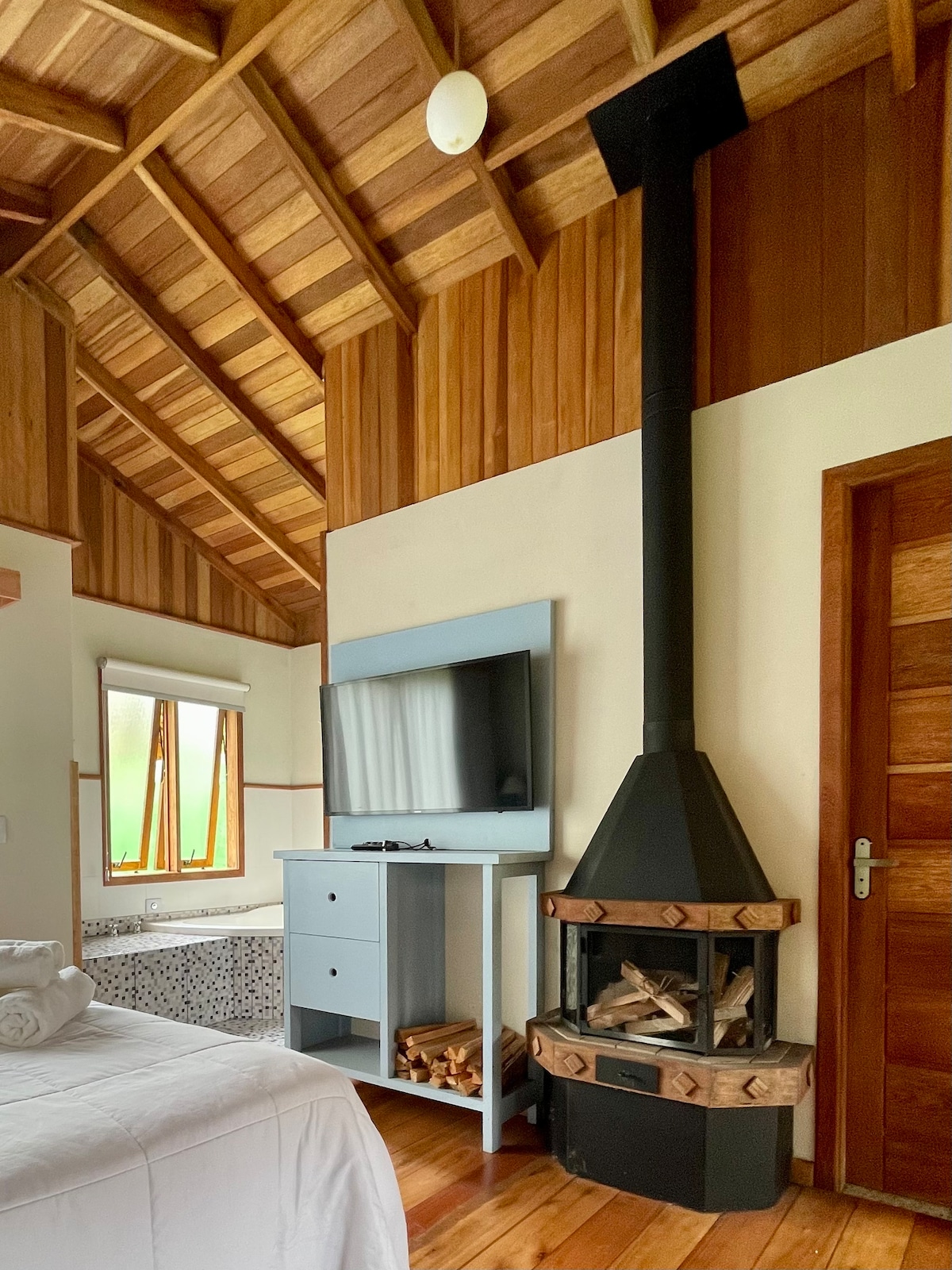 Rumah besar dengan seluruh bahagian depan kaca membolehkan setiap hari melihat matahari terbenam yang indah dari ruang tamu itu sendiri. Semua bilik di dalam rumah mempunyai pemandangan gunung-ganang. Terletak di puncak Serra da Mantiqueira. Ruang makan dan ruang tamu disepadukan dengan dapur dan dengan pendiangan. 2 bilik tidur dengan katil kelamin dan 1 mezanin dengan tilam kelamin. Di kawasan riadah kami mempunyai 1 kolam renang,kami sedang membina kawasan baru,tetapi apabila ada tetamu tidak akan ada kerja.