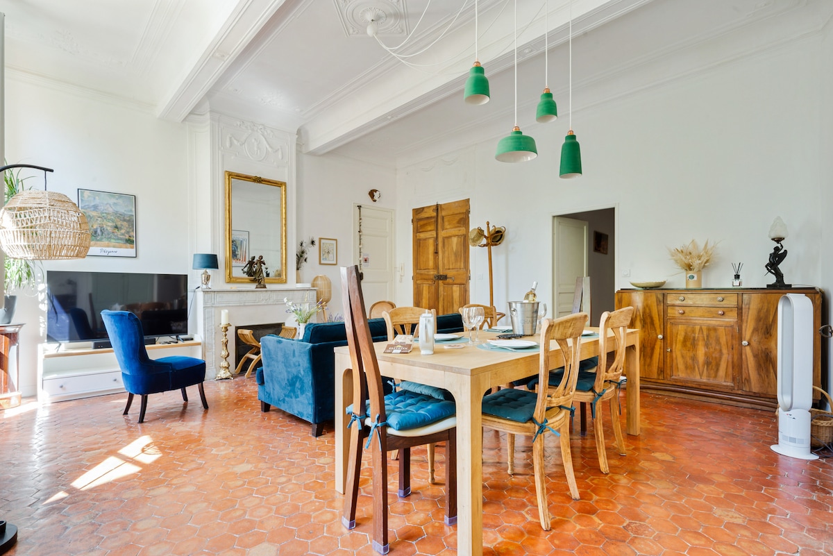 Terletak di jalan yang tenang di pusat bandar, apartmen dupleks saya menawarkan semua keselesaan yang anda perlukan untuk meneroka Aix dan rantau ini: bilik yoga, projektor, AC, tempat letak kereta persendirian. "Rue d'Italie" berada di hujung jalan di mana anda akan mendapat akses kepada beberapa kedai makanan terbaik di Aix (lihat alamat saya dalam buku panduan saya!). Dupleks dalam bangunan tiga tingkat. Tingkat pertama (rez-de-chaussé) digunakan oleh pusat seni kontemporari, yang menjadikannya terasa seperti anda berada di rumah bandar.