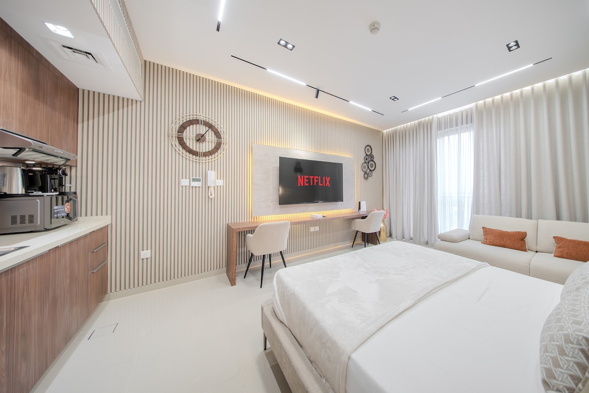 Suite Mewah 1BR di Pusat Misk / Aljada / 2WC