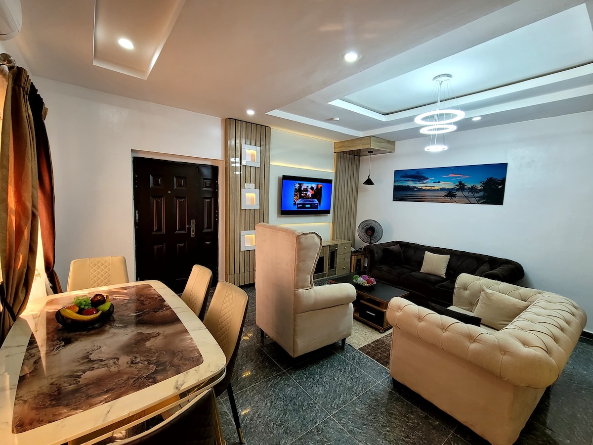 Selamat datang ke Delight Apartments, yang terletak di High Castle Estate yang tenang di Lagos. Alami keselesaan dan kemudahan yang tiada tandingan di apartmen kami yang direka bentuk dengan teliti. Sama ada anda melawat untuk perniagaan atau percutian, ruang kami memenuhi semua keperluan anda untuk penginapan yang tidak dapat dilupakan. Daripada daftar masuk yang lancar hingga perkhidmatan yang luar biasa, setiap aspek pengalaman anda direka dengan teliti untuk kepuasan anda sepenuhnya. Tetamu sukakan kami kerana komitmen kami terhadap kecemerlangan dan perhatian kepada perincian.