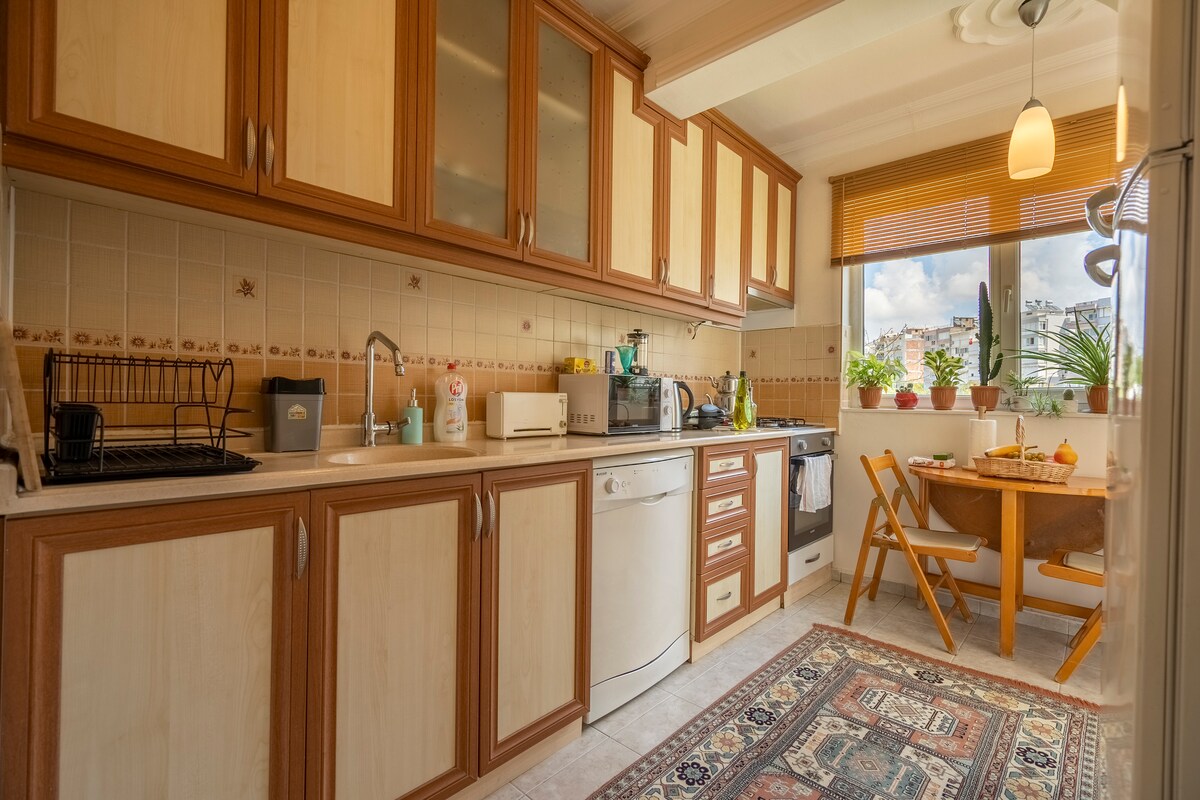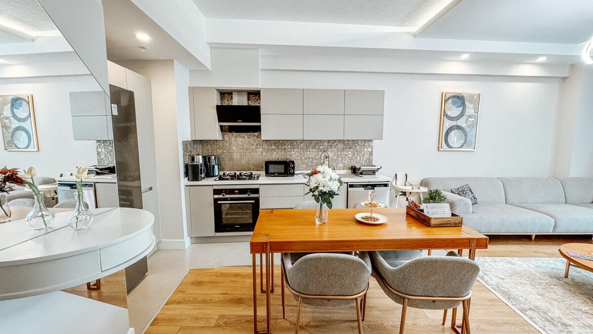 Ruang tamu moden dan cerah dalam jarak berjalan kaki dari Bandar Lama 🌿 Sesuai untuk tetamu yang ingin meneroka bandar pada waktu siang dan berehat dengan selesa selepas itu — sesuai untuk keluarga dan pekerja jarak jauh. Dengan akses mudah kepada pengangkutan awam, anda boleh sampai ke banyak bahagian Antalya dengan mudah.