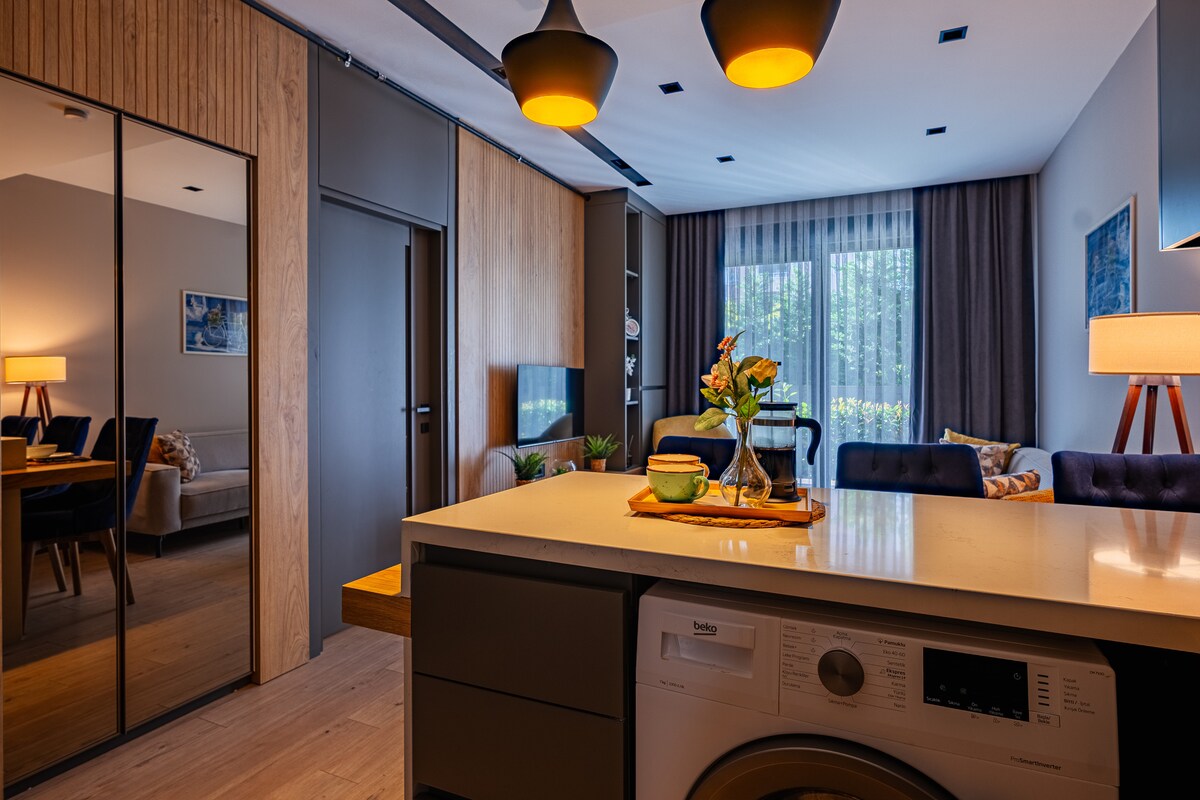 Ini adalah apartmen moden yang menawarkan gabungan sempurna antara keselesaan dan kemewahan. Apartmen ini mempunyai ruang tamu yang luas dengan tingkap besar yang membolehkan cahaya semula jadi masuk. Ruang tamu terbuka ke balkoni. Apartmen ini juga mempunyai dapur lengkap dengan semua peralatan yang diperlukan. Sorotan apartmen ini ialah kolam renang, yang sesuai untuk bersantai dan berseronok. Balkoni juga merupakan tempat yang sesuai untuk menghiburkan tetamu atau sekadar berehat dan menikmati pemandangan.