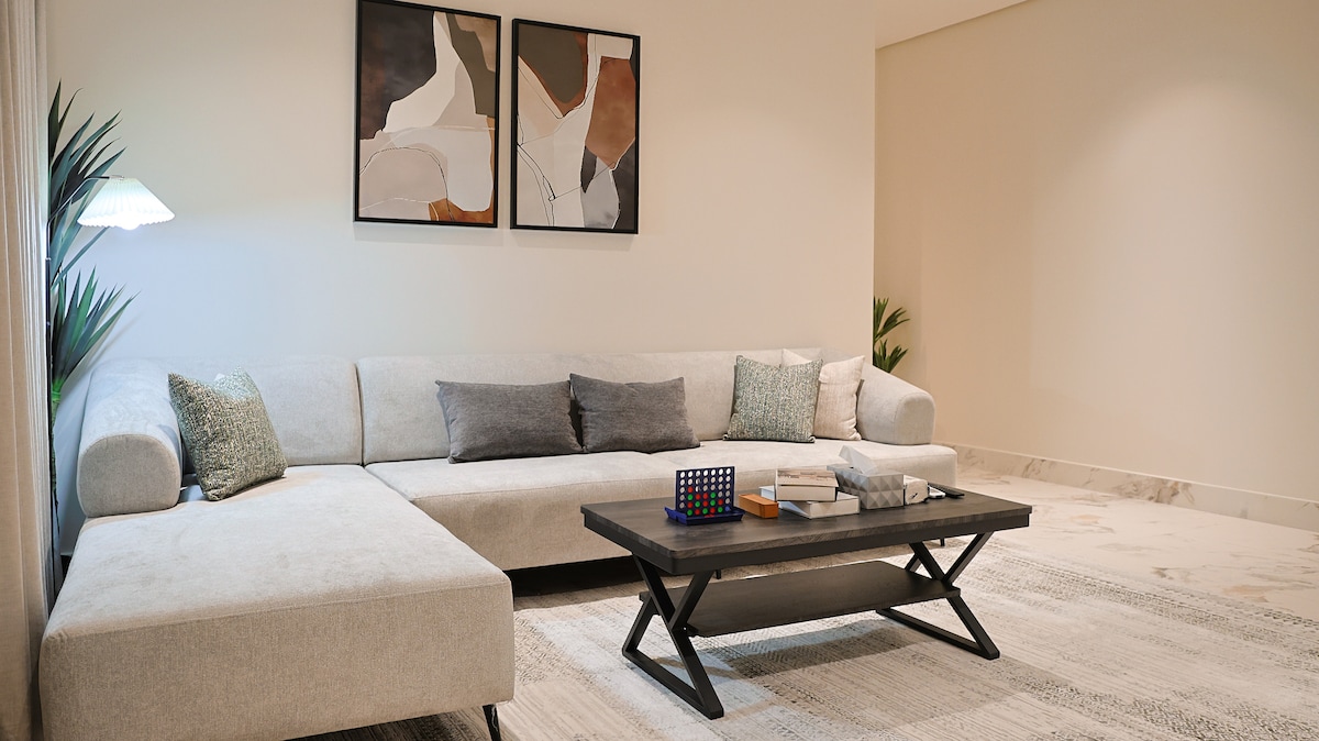 Apartmen moden mewah di Al Khobar Penginapan bergaya yang menggabungkan keselesaan dan kemewahan. Ciri-ciri Apartmen: • 2 bilik tidur dengan tilam yang selesa • Ruang tamu dengan TV pintar 75 inci • Langganan Netflix dan Watchvip • Kemasukan sendiri • Bersihkan bilik mandi dengan bekalan asas Lokasi Ideal: • 3 minit dari Jambatan Bahrain • 5 minit dari Al Khobar Corniche • 10 minit dari Al Rashed Mall • 15 minit dari Haff Moon • Berdekatan dengan Ajdan Walkway Wook dan Pulau Al-Daghir