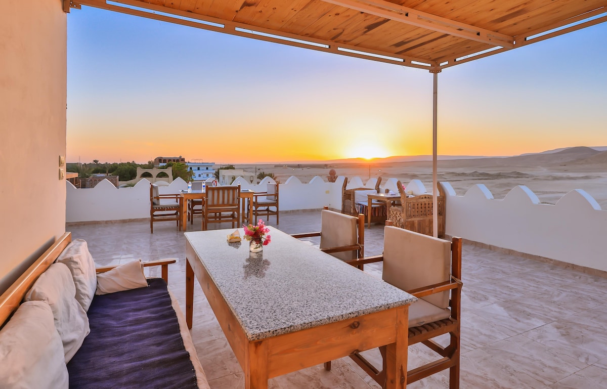 Nikmati rumah tetamu persendirian yang sepenuhnya berhawa dingin di Tepi Barat Luxor, yang menampilkan ruang tamu yang selesa, bilik tidur, bilik mandi persendirian dan dapur yang serba lengkap. Bersantai di balkoni peribadi atau teres atas bumbung anda, dan berendam di kolam renang berkongsi. Hanya beberapa minit dari tapak purba seperti Valley of the Kings dan Kuil Hatshepsut. Elegan, tenang, dan sempurna untuk penginapan yang selesa berhampiran dengan sejarah.