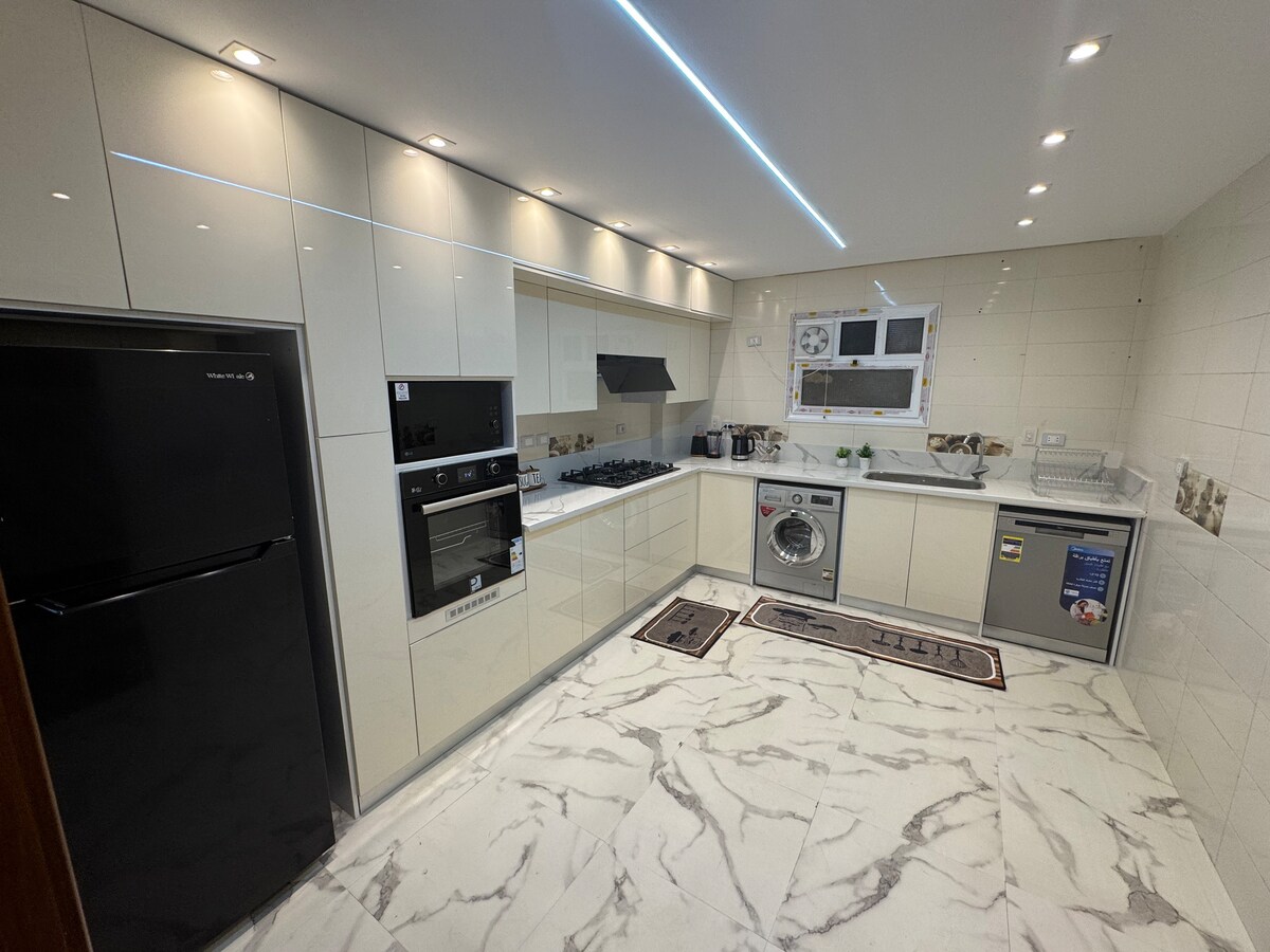 Alami keselesaan moden terbaik di apartmen 2 bilik tidur dan 2 bilik mandi baharu kami yang sesuai untuk 4 orang. Setiap inci ruang bergaya ini baharu dan direka untuk menjadikan penginapan anda tidak dapat dilupakan. Apartmen kami sesuai untuk keluarga atau perjalanan perniagaan. Anda akan menemui semua kemudahan yang anda perlukan, termasuk dapur lengkap, ruang tamu yang selesa Terletak di kompaun utama, anda hanya beberapa langkah dari restoran, kedai di tagamoa dan bandar naser Tempah sekarang. Kami tidak sabar untuk menjadi hos anda!