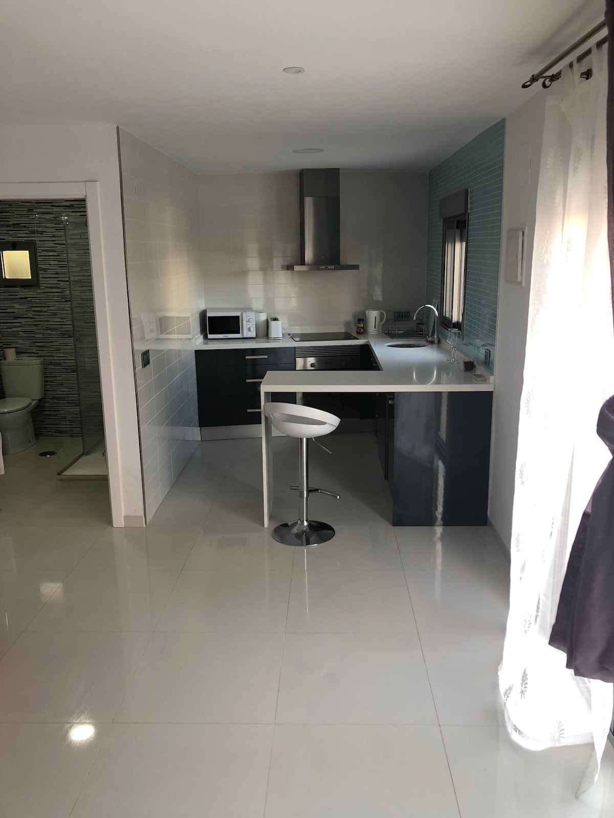 Ga er gewoon even tussenuit in deze rustgevende, centraal gelegen accommodatie. Deze studio ligt in de campo van Calpe, 10 min rijden van het centrum en strand. De studio heeft een eigen ingang, badkamer, kitchenette, BBQ, eethoek buiten, tv en tweepersoonsbed. De studio is verder voorzien van airco en WIFI. Binnen is het niet mogelijk om te koken, buiten kan er gekookt worden op de barbeque. Er mag gebruik worden gemaakt van het zwembad, deze is niet prive! Onze hond is overdag buiten.
