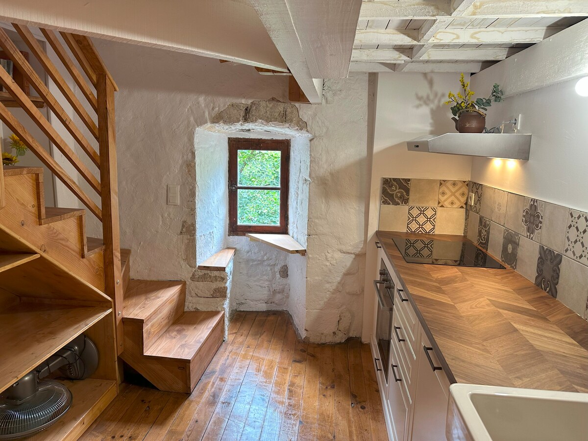 Selamat datang ke tengah-tengah kampung zaman pertengahan Rochemaure, yang terletak di jalan yang tenang berhampiran dengan Via-Rhôna. Di sini, di tingkat bawah rumah kampung yang menawan, anda akan menemui bekas galeri seni yang berubah menjadi kotej yang hangat dan selesa kira-kira 45 meter persegi. (sila ambil perhatian bahawa penunggang basikal boleh meletakkan basikal mereka di ruang tamu) penginapan kami juga dilengkapi dengan sistem terapi cahaya yang tersedia secara percuma - lihat gambar