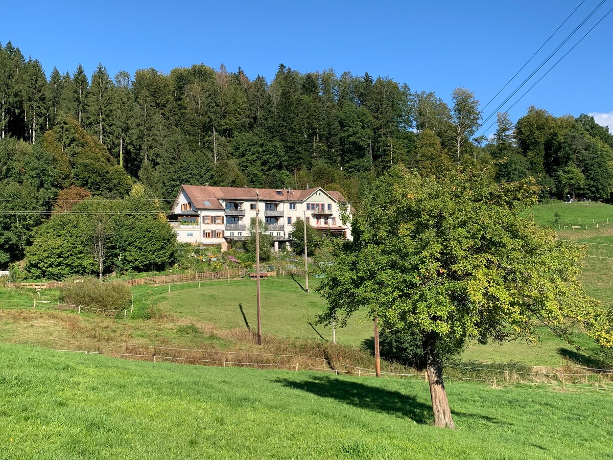 Resort untuk pencinta alam semula jadi ini terletak di tengah-tengah Rizab Biosfera Hutan Hitam Selatan. Di atas lautan awan dataran Rhine berdiri rumah hutan kami yang indah. Mulakan pendakian anda betul-betul di luar pintu di Westweg, atau lawatan basikal gunung melalui Black Forest. Naik S-Bahn (8 minit dengan kereta) dalam masa 30 minit. Ke Basel, Perancis berjarak 45 minit, Freiburg sejam. Feldberg 45 minit. Perhatian: Kolam renang Schweigmatt hanya untuk ahli kelab.