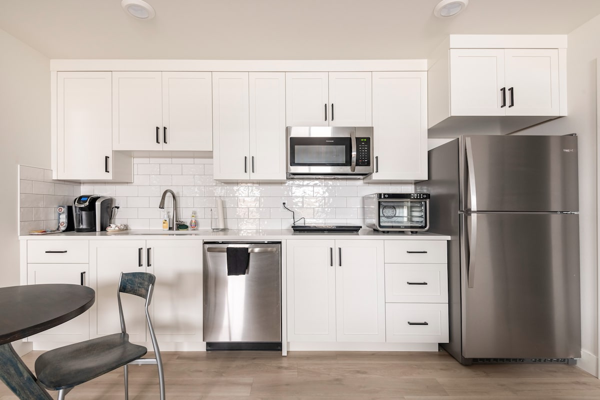 Studio ciptaan artis di tengah-tengah daerah Alberta Arts, menampilkan banyak kayu dan keluli yang diperoleh semula. Terletak satu blok dari jalan Alberta yang sibuk, studio yang cantik ini boleh menempatkan 2 orang, atau boleh menempatkan sekeluarga 4 orang. Satu anjing yang berkelakuan baik dibenarkan. Tiada yuran haiwan peliharaan. Maaf, kucing tidak dibenarkan. “Saya telah menginap di kira-kira 30 penginapan AirBNB yang berbeza dan penginapan Alex adalah yang terbaik yang saya ingat.” Kris, tetamu baru-baru ini “Penginapan Alex adalah penginapan Airbnb kegemaran saya sepanjang masa.” Sentuhan istimewa yang sangat prihatin” Michelle, tetamu baru-baru ini