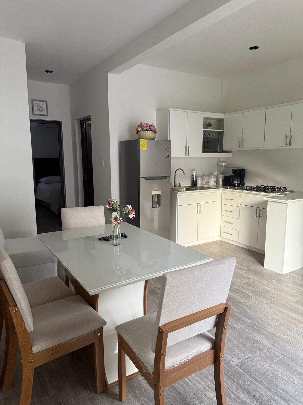 Nikmati penginapan yang selesa dan elegan di apartmen kami, yang terletak hanya 7 blok dari Basilica Esquipulas yang megah. Sesuai untuk pasangan, rakan atau keluarga. Ruang yang selesa ini mempunyai pendingin hawa, air panas, internet pantas dan dapur lengkap yang dilengkapi dengan dapur dan peti sejuk, sesuai untuk menyediakan makanan anda. Tempat letak kereta berada di hadapan penginapan di mana ia adalah tempat yang selamat dan tenang. Kami juga mempunyai kamera luar untuk keselamatan dan keselesaan anda.
