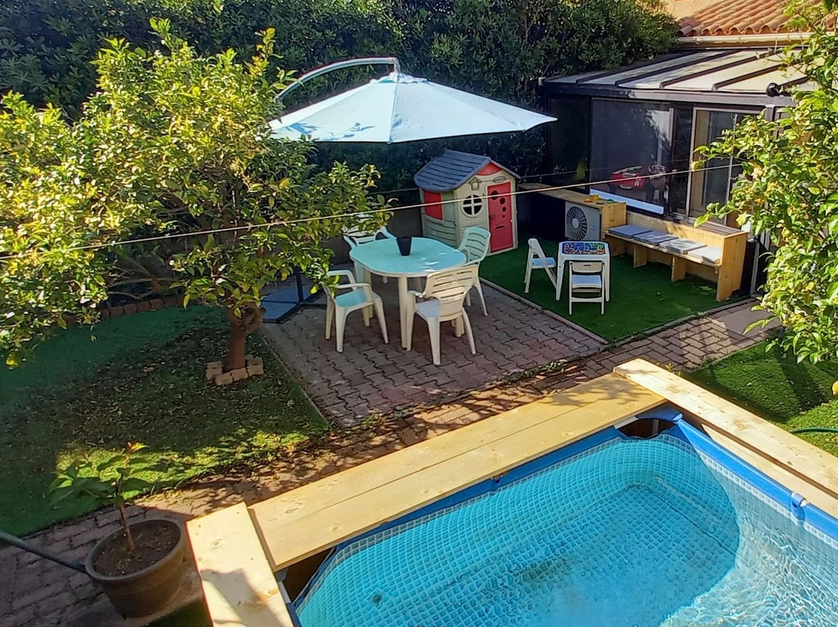 Baru-baru ini diubahsuai, datang dan temui "rumah pantai" dengan hiasan bohemia. Letak kereta dan nikmati lokasinya yang indah: pantai, kedai, pasar dalam jarak berjalan kaki 5 minit. Bersantai di kolam renang air panas dengan pantai dan kawasan makan teduh Dapur lengkap, barbeku, 3 bilik mandi, penyaman udara di semua bilik Untuk keselesaan anda: - 2 suite dengan katil saiz king (termasuk 1 di tingkat bawah) - 1 bilik tidur dengan katil saiz king - 1 asrama dengan 4 katil kanak-kanak
