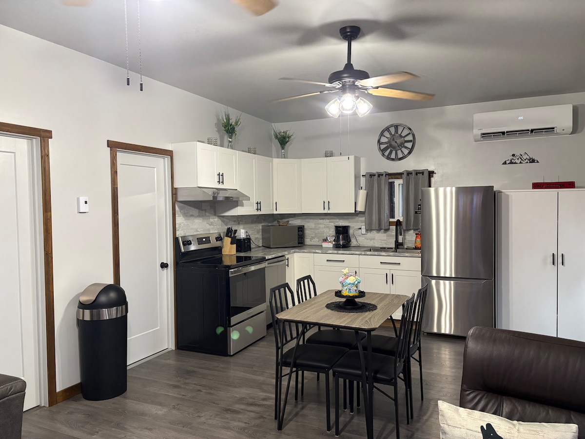 Campuran antara rumah moden dan desa yang sesuai untuk bujang atau pasangan kerana terdapat 2 katil dan 2 bilik mandi. Bilik tidur utama 24x14 yang besar mempunyai katil raja ensuite penuh dengan tab mandi Jacuzzi yang cantik dan santai untuk dua orang . Bilik tidur tingkat utama 16x9 mempunyai katil queen c/w tempat api elektrik Terletak 3 km dari lebuh raya di kejiranan yang dicari .5 minit atau kurang memandu ke hampir semua yang anda perlukan . Dan hanya 15 minit ke stesen kereta api untuk kereta api lawatan. Harap maklum bahawa ia adalah kereta salji masuk, keluar bukan ski