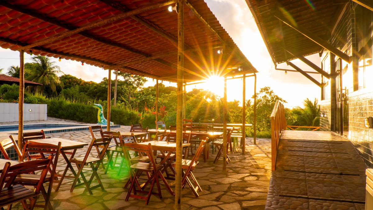 Bersantai di Tapak Pitumirim dengan kolam renang yang luas, pagoda tertutup dengan barbeku dan ketuhar kayu. Sesuai untuk keluarga atau kumpulan yang ingin berehat di tengah-tengah alam semula jadi. Ruang hijau, halaman dan keselesaan. Hanya 30 minit dari João Pessoa dan 10–20 minit dari pantai yang paling indah di Pantai Selatan, seperti Coqueirinho. Diaristas tersedia untuk membantu dengan makanan dan pembersihan.