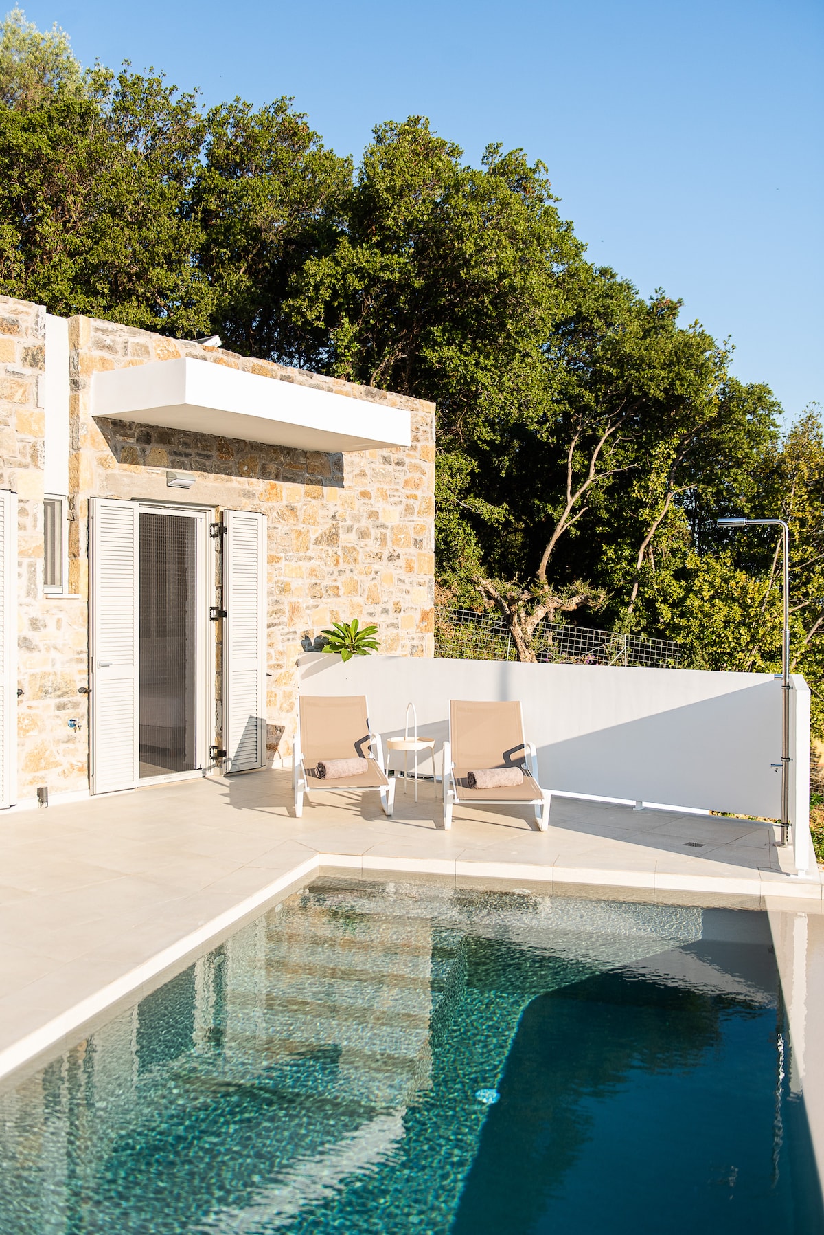 Kotej Asteri adalah pelan terbuka, bijou dan kotej satu bilik tidur yang direka dengan indah. Sesuai untuk pasangan dan bulan madu. Bahagian dalaman gaya butik membuka ke teres besar untuk makan dan berehat. Bilik mandi ensuite menghala keluar dari bilik tidur yang menenangkan ke kolam renang terjun persendirian, yang bersaiz 2m x 4m. Kolam renang boleh dipanaskan dengan permintaan terlebih dahulu. Kotej ini terletak di antara pokok zaitun matang di kawasan desa Cretan yang indah dan terpencil dari rumah utama.