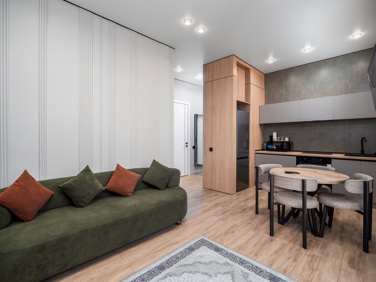 Berseronok di tempat kami yang selesa dan bergaya. Studio moden dan berfungsi di bandar Almaty untuk 2-4 orang. Mesra bayi dan kanak-kanak. Seluruh kediaman yang baru diperbaharui mempunyai semua yang diperlukan untuk penginapan mudah anda. Apartmen ini mempunyai dapur yang lengkap, Wi-Fi dan semua kemudahan yang diperlukan. Apartmen ini terletak bersebelahan dengan pusat membeli-belah besar dengan pelbagai restoran, kafe, dengan pasar raya. Jalan utama City Walking adalah dalam 10 minit dengan berjalan kaki.