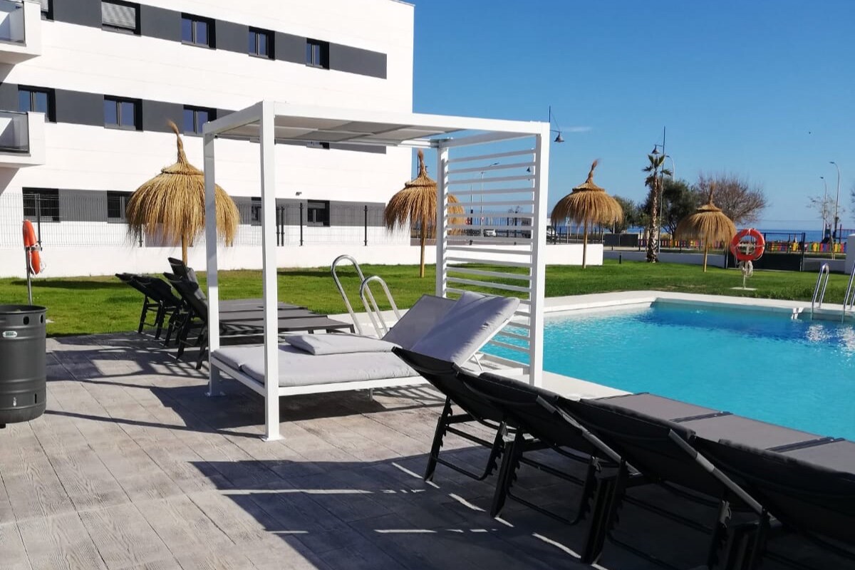 Enjoy your family vacation or winter work stay in an exotic, bright, and very comfortable two-bedroom apartment with two bathrooms, two private free parking spaces, free high-speed Wi-Fi, a 50” smart TV, a work area with coffee machine, a summer pool, a panoramic chill-out terrace with unforgettable sea views, located just 250m from the beach and the promenade of Torre del Mar, with all the necessary amenities and a summer-like climate all year-round!