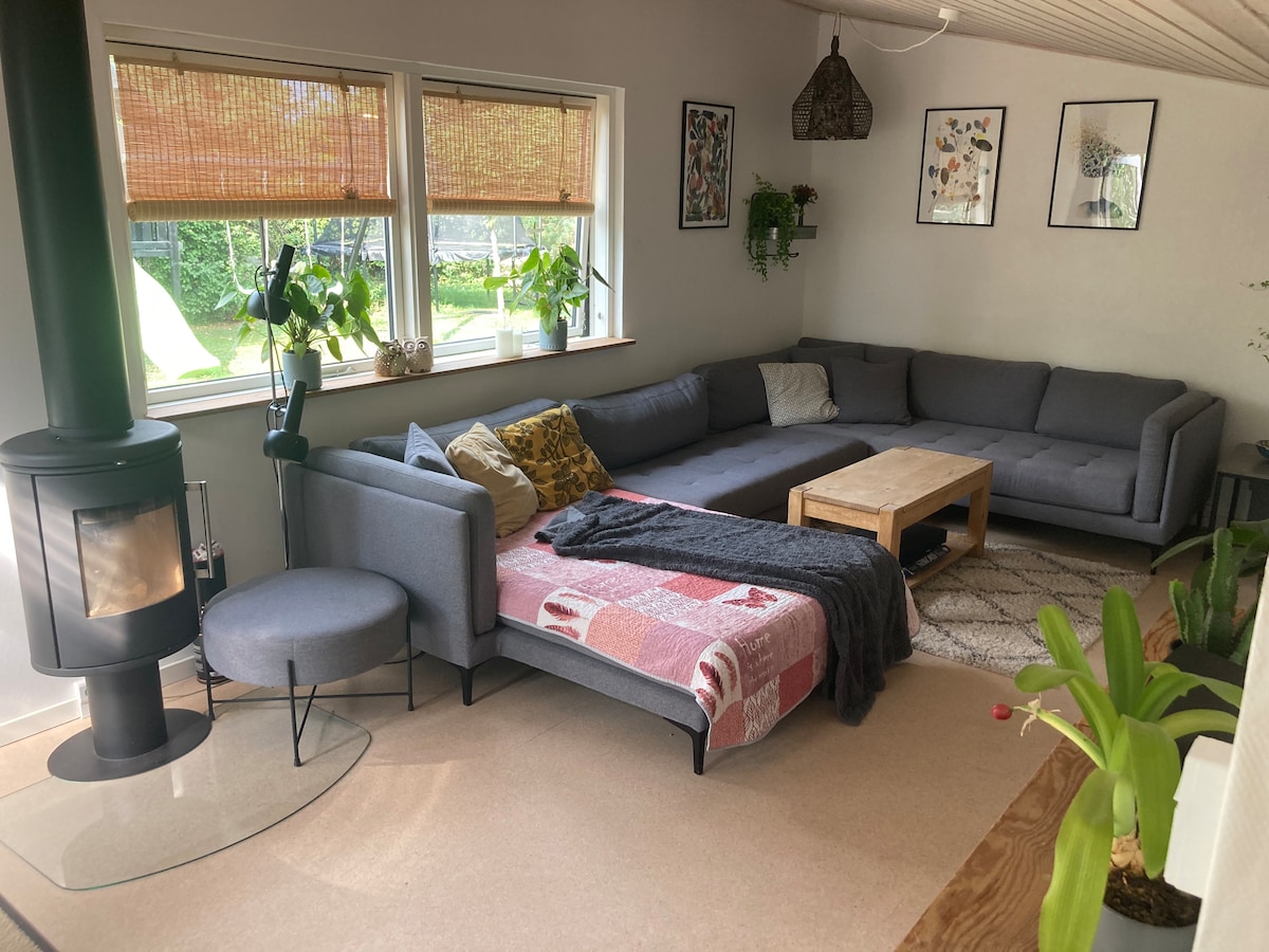 Annex/backhouse yang selesa dengan ruang tamu persendirian, ruang tidur, dan dapur kecil – Sila ambil perhatian: Bilik mandi, dapur, dan gimnasium kecil terletak di bangunan berasingan hanya 10 meter jauhnya. Kawasan luar dengan lubang api dan pemanggang, aman dan tenang. Kami tinggal di ladang sendiri sekiranya anda memerlukan apa-apa. Tempat yang sesuai untuk percutian hari bekerja dan kerja yang fokus. Pada masa yang sama, berhampiran dengan Lebuhraya, supaya anda boleh bergerak dengan cepat.