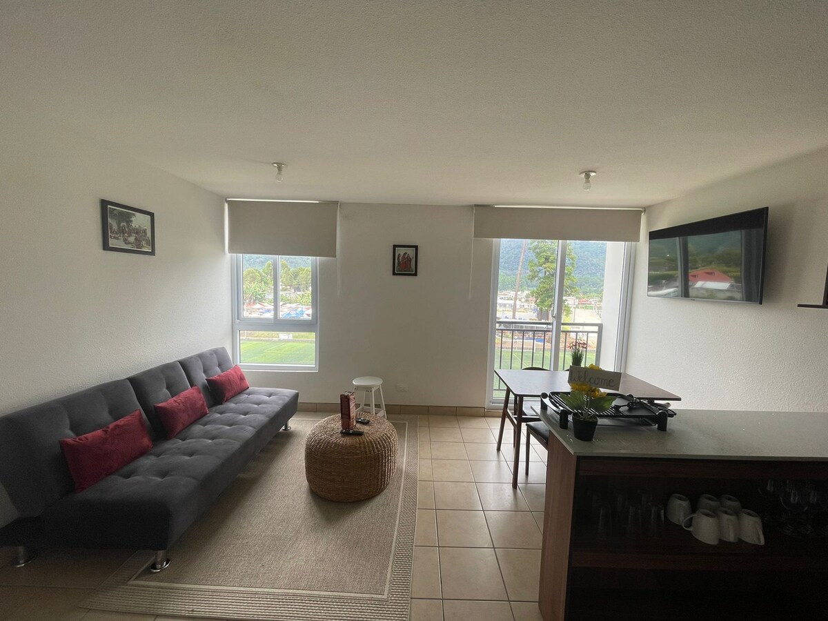 Bersantai di apartmen yang selesa menghadap gunung-ganang. 🏔️✨ Terletak di tingkat masuk, sesuai untuk pengembara yang lebih suka mengelak tangga. Kondominium selamat dengan kawalan akses dan keselamatan 24/7, beberapa langkah dari Paseo Candelaria dan berhampiran dengan pasar raya dan restoran. 🔑 Daftar masuk layan diri 🛏️ Katil sofa besar 🚗 Tempat letak kenderaan dan akses mudah 💰 Kadar istimewa untuk penginapan lebih daripada satu malam Keselesaan, privasi dan lokasi ideal. 📅 Tempah sekarang dan nikmati Cobán!
