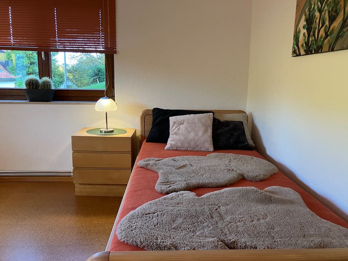 Durch einen separaten Eingang gelangt man in die kleine, aber feine 32 m²-Einliegerwohnung unserer Doppelhaushälfte. Die eigene Südterrasse lädt zum Genießen ein. Die Wohnung ist schön lichtdurchflutet, gemütlich und ist mit allem Nötigen ausgestattet. Wir als Gastgeberfamilie freuen uns von Herzen Dich/ Euch gastfreundlich zu empfangen und gleichzeitig hat man hier die nötige Privatsphäre.