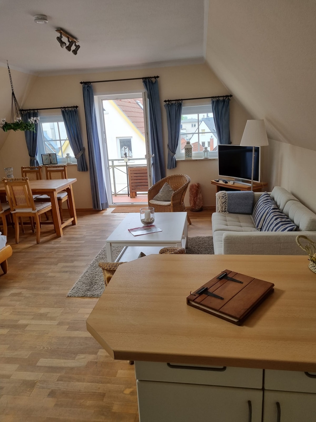 Kleine, gemütliche, praktisch, perfekt gelegene Ferienwohnung in Warnemünde! Lichtdurchflutet, im Dachgeschoss, freut sich auf Freunde der Ostsee - die ist nämlich nur 70 m weit entfernt- aber trotzdem nur 4 Minuten zum Kirchenplatz, dem Herzen von Warnemünde. Da die Couch auch als Schlafplatz zur Verfügung steht, können bis zu 4 Personen dort übernachten- optimal aber für 2 Personen. Für Kinder stelle ich gerne Bett und Stuhl zur Verfügung auf Nachfrage. Hunde sind bei mir immer willkommen!