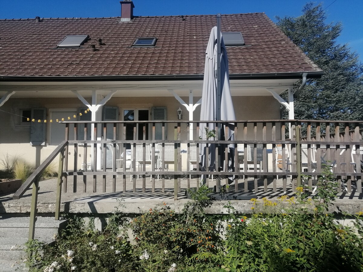Penginapan bebas di tingkat 2 (pintu kanan) di rumah Alsatian kami yang berasal dari tahun 1806 - sangat tenang menghadap dewan bandaraya. Rasuk terdedah yang cantik, bilik tidur mezzanine yang sangat romantik menghadap pusat kampung & menara loceng. WiFi berkelajuan tinggi percuma, penyaman udara, TV: & Amazon Prime Video, Netflix. Dapur & mesin basuh yang serba lengkap. Euroairport Basel-Mulhouse 5.2 km, Basel 10 km, Weil-am-Rhein 17 km, Petite Camargue Alsacienne 6 km. Tempat letak basikal/motosikal yang terlindung di lokasi.