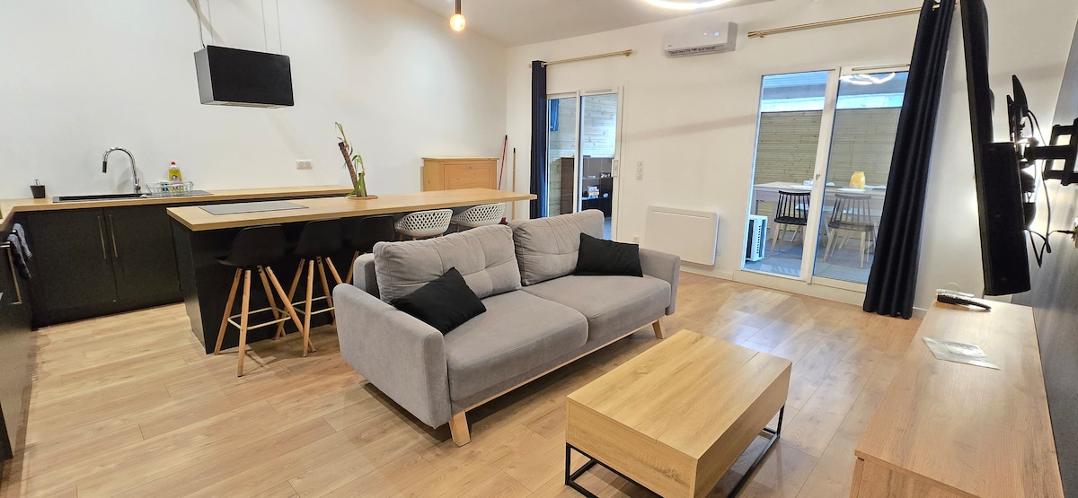 Bangsal lama yang diubahsuai menghadap banjaran gunung Pyrenees! Di tengah-tengah kampung yang damai, datang dan nikmati ketenangan penginapan ini. Bangsal bebas, berasingan daripada rumah kami dan kotej lain, anda akan berkongsi taman serta kolam lagunnya yang indah! Di tingkat bawah bilik tidur seluas 21 m2 dengan bilik mandi dan tandas , menghadap teres dengan jakuzi persendirian. Garaj seluas 20m2 memberikan akses kepada tangga yang menuju ke tingkat atas ke ruang tamu dan teresnya dengan pemandangan 🏔️