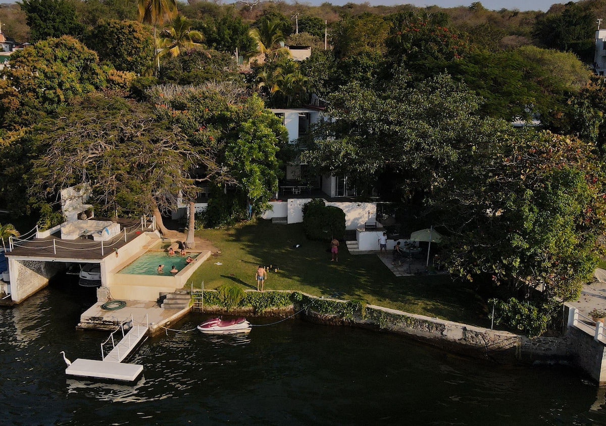 Rumah yang diubahsuai sepenuhnya di tepi Tasik Tequesquitengo, dengan kolam renang yang dipanaskan, taman tepi tasik, dok, 2 teres, ruang makan luaran dan dalaman, dapur lengkap, barbeku dan ketuhar pembakaran kayu di teres luar. Rumah ini disewa dengan termasuk perkhidmatan pembersihan. Rumah ini mempunyai Wi-Fi Redundant (Infinitum dan Kabel Mas), TV dengan sistem TV kabel dan Netflix, ia mempunyai kayak dan meja ping pong. Mempunyai 5 bilik dengan bilik air sendiri. Pendingin hawa di 4 bilik tidur.