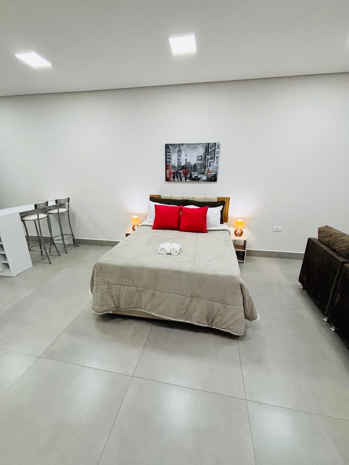 Apartmen moden dan selesa di Americana, dengan pemandangan istimewa Avenida Brasil. Sesuai untuk sehingga 2 orang, ia menawarkan katil yang selesa, penyaman udara, Wi-Fi dan dapur kecil yang lengkap. Kondominium ini mempunyai kolam renang, bilik permainan, bilik dobi dan ruang letak kereta untuk 1 kereta. Lokasi yang sangat baik, berhampiran dengan restoran, kedai roti, farmasi, gimnasium dan kawasan riadah. Kepraktisan, keselesaan dan keselamatan untuk penginapan anda!