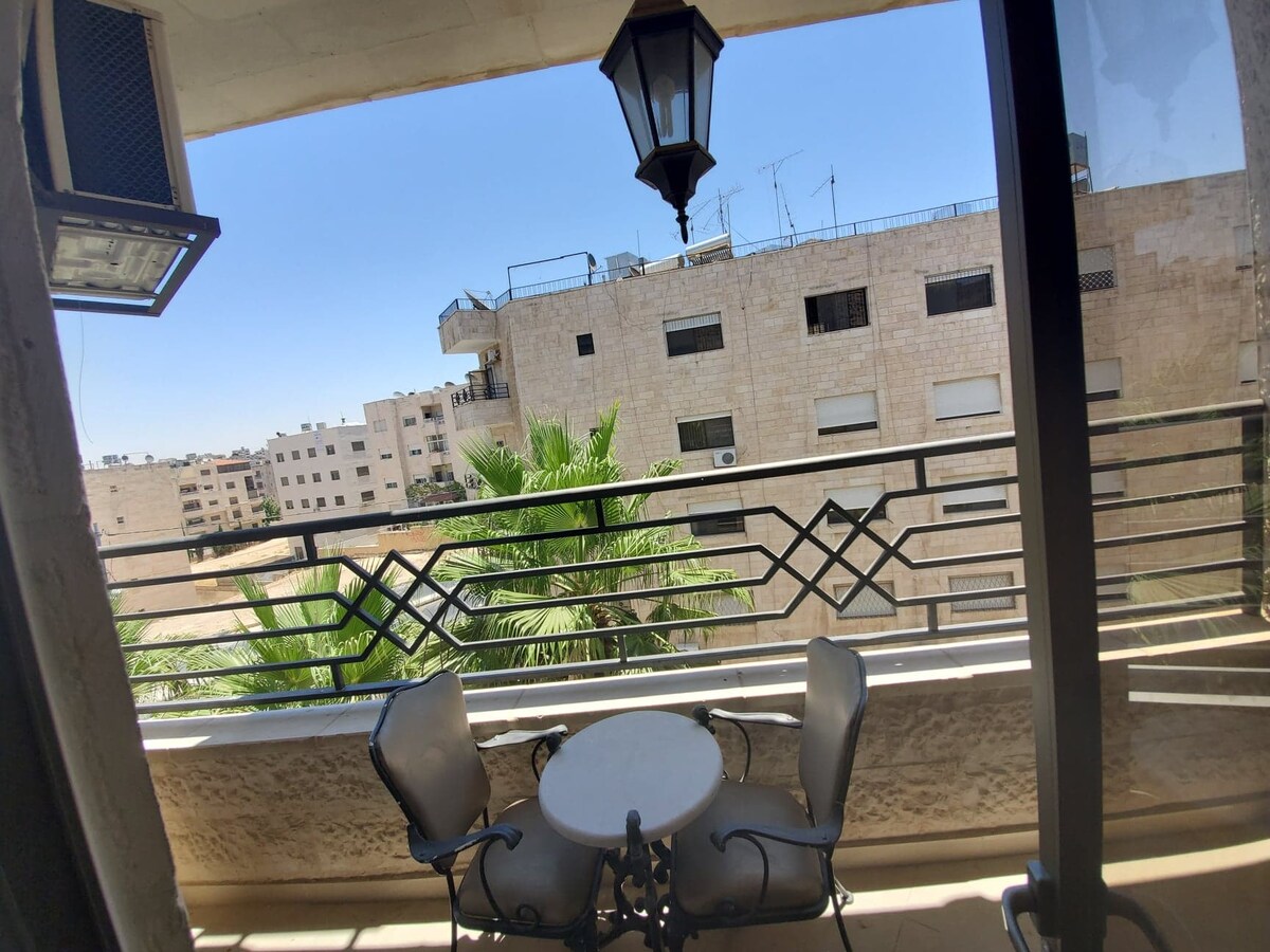 Menginap Dalam Gaya Di Apartmen Kontemporari YANG BARU Dilengkapi dan Dilengkapi SEPENUHNYA ini, dan nikmati: > Bilik Cerah dan Luas > Pemandangan bandar persendirian dan tidak terhalang > Restoran/Kafe Terbaik, kedai runcit dan banyak lagi, semuanya dalam jarak BERJALAN KAKI. > Lokasi Dinamik, berhampiran semua jalan bandar utama. -Downtown berjarak 10 minit memandu:) Kemudahan: - Wi-Fi Berkelajuan Tinggi -Smart TV -Bathtub -AC 's - Tempat Letak Kereta Percuma Ini adalah pilihan ideal untuk keluarga atau rakan-rakan yang ingin menikmati penginapan lima bintang yang selesa di Amman.