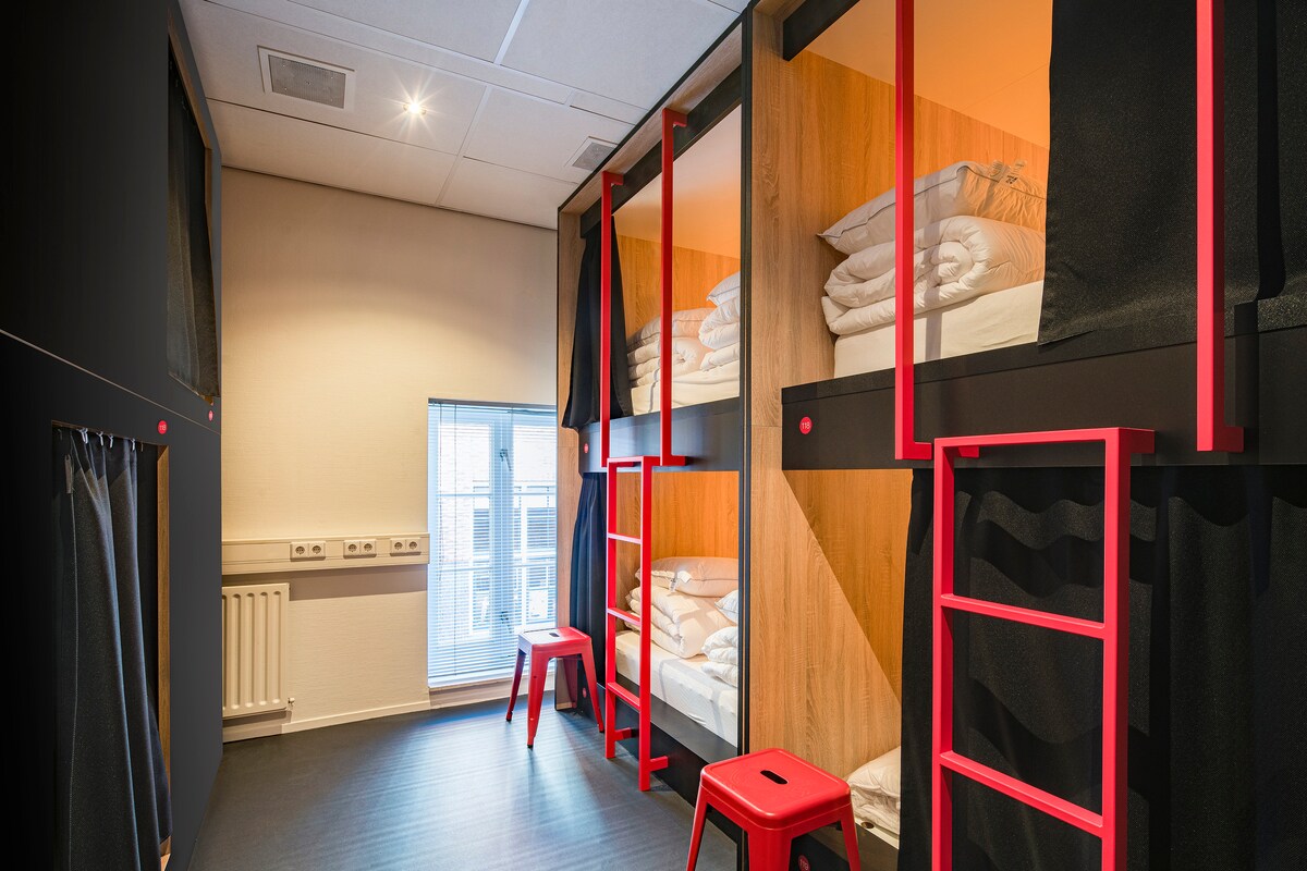Tiada stokin berbau, tiada dengkuran-tidak dibenarkan untuk kanak-kanak lelaki! Menginap di asrama khusus wanita kami di City Trip Hostel di Purmerend, berhampiran Amsterdam. Nikmati privasi dan pengudaraan penuh dalam pod peribadi anda, serta akses kepada bilik mandi wanita sahaja dengan lantai yang dipanaskan. Setiap pod termasuk lampu membaca, WiFi percuma, pengering rambut, cadar lembut, tilam yang selesa, loker peribadi, dan soket USB/EU. Menempah untuk kumpulan? Hubungi kami terus atau layari laman web kami untuk tempahan kumpulan.