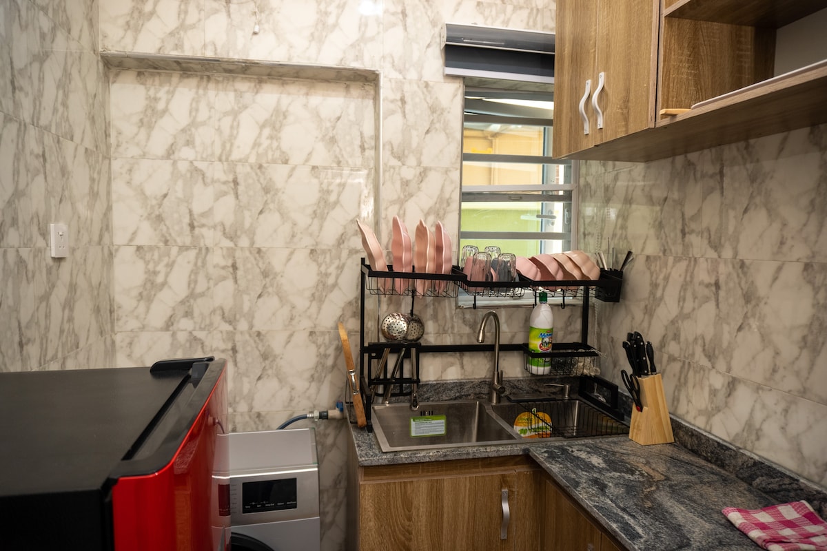 Alami percutian 1BR yang bergaya dan luas di estet yang selamat dan tenang. Rumah moden kami mempunyai Wi-Fi berkelajuan tinggi, elektrik 24/7, daftar masuk sendiri, dan Netflix untuk hiburan. Bersantai di ruang tamu yang selesa atau masak di dapur yang serba lengkap. Bilik tidur yang tenang dengan AC memastikan penginapan yang tenang. Bekerja dari jauh di ruang kerja khusus dan segarkan diri di 2 bilik mandi kontemporari dengan water heater. Nikmati gabungan keselesaan dan kemudahan yang sempurna di rumah sebenar ini!
