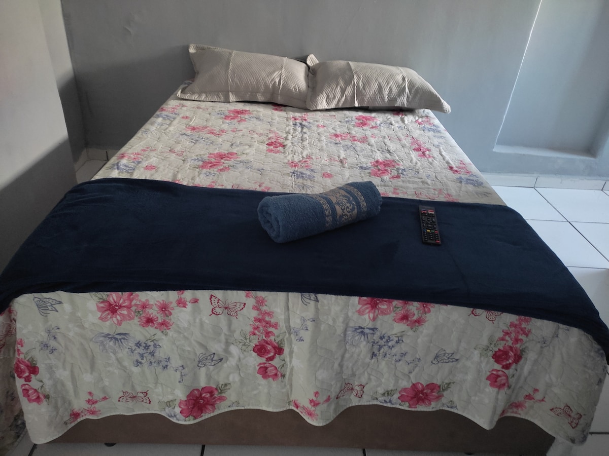 Seja bem bem-vindo a nossa casa. Ideal para casais e viajantes a trabalho. Oferece: *Quarto:*Cama de casal, guarda-roupa e lençóis macios, Tv com Netflix, ferro de passar. *Sala de Estar:* Ampla, com sofá confortável, e Wi-Fi. *Cozinha:* Totalmente equipada com fogão, geladeira, e utensílios. *Banheiro:Com chuveiro quente e utensílios essenciais. Segurança:Localizada em uma vizinhança tranquila, com fechaduras robustas. Comodidades: Garagem, roupas de cama e produtos de higiene.