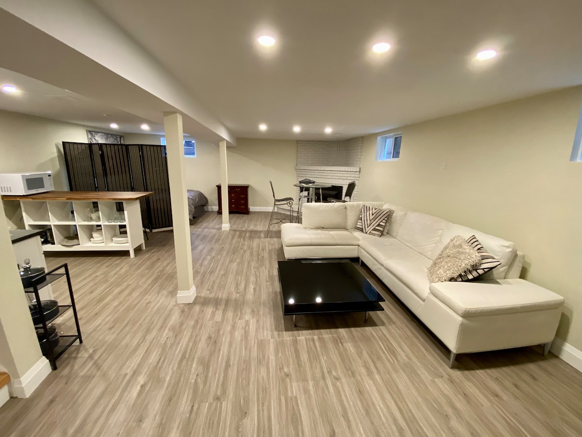 Ruang bawah tanah yang luas dan baru siap dengan siling 8'dan cahaya semula jadi yang banyak! Sesuai untuk percutian romantik atau untuk para profesional yang lebih matang atas urusan perniagaan. Langkah ke tempat makan dan kedai Locke Street, serta taman, hospital, dan pusat bandar Hamilton. Ciri-ciri termasuk pemanasan di tingkat, TV 4k 55", dapur tersuai, dan dobi. Menempatkan 4 orang dengan katil Queen di bilik tidur dan tilam Queen tarik keluar di ruang duduk. Tempat letak kereta percuma di tepi jalan dan daftar masuk sendiri pada bila-bila masa.