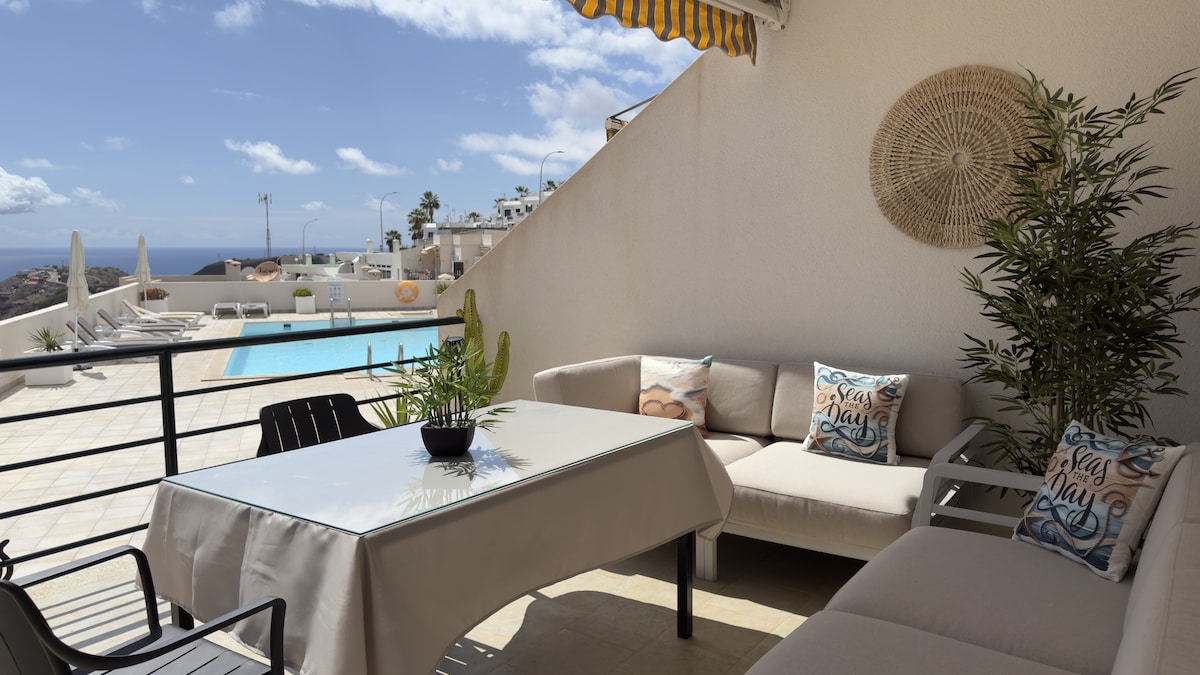 Anda akan menyukai apartmen ini dengan pemandangan Lautan Atlantik yang indah, terletak di Playa del Cura, 10 km dari Puerto de Mogán. Kolam BERHANGAT sepanjang tahun - Penyaman udara. Teres persendirian yang indah seluas 18 m di mana anda boleh berjemur, mempunyai kanopi lipat. - 1 Bilik tidur. Ruang tamu dan dapur. DAFTAR MASUK -> 3:00 PTG hingga 8:00 MLM. DAFTAR KELUAR -> 11:00 pagi. Penghunian Maksimum: 3 orang. Bilik tidur mempunyai 2 katil single lebar 90cm
